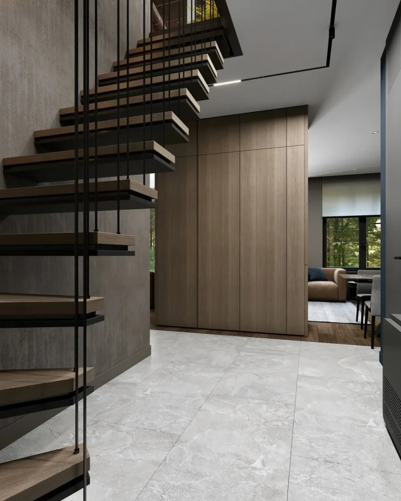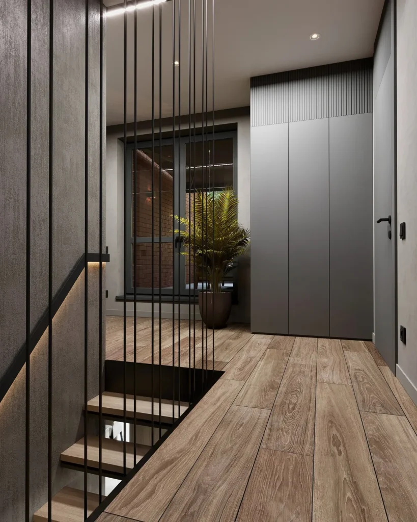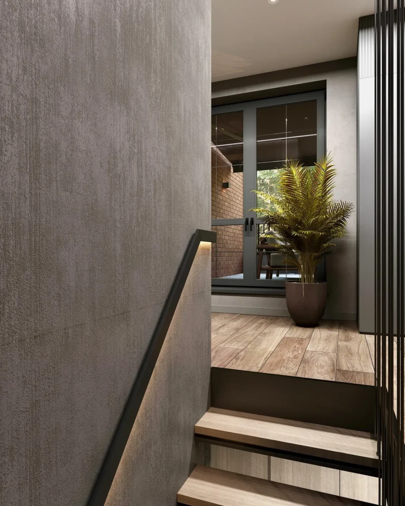 Внутренняя отделка таунхауса схожа с ремонтом квартиры, но имеет важную особенность — наличие лестничного марша.